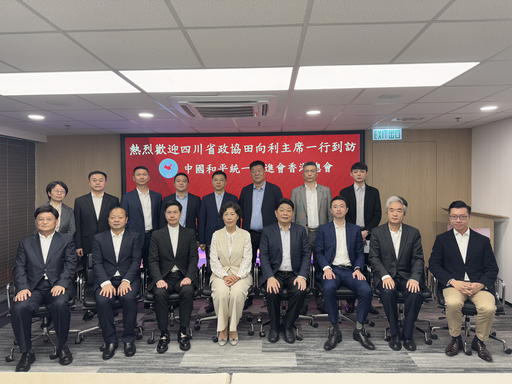 3月28日,中國(guó)和平統(tǒng)一促進(jìn)會(huì)香港總會(huì),接待四川省政協(xié)主席田向利一行並座談交流。全國(guó)政協(xié)委員、廣東省福建商會(huì)會(huì)長(zhǎng)、香港統(tǒng)促總會(huì)執(zhí)行會(huì)長(zhǎng)許明金代表全國(guó)政協(xié)常委、香港統(tǒng)促總會(huì)會(huì)長(zhǎng)姚志勝熱情歡迎他們的到來(lái)。雙方就川港深化合作、更好貫徹落實(shí)兩會(huì)精神進(jìn)行深入交流。田向利表示,期待與香港統(tǒng)促總會(huì)進(jìn)一步加強(qiáng)川港經(jīng)貿(mào)合作,攜手開(kāi)展反對(duì)「臺(tái)獨(dú)」分裂、促進(jìn)兩岸融合發(fā)展等工作。許明金表示,希望推動(dòng)港蜀兩地更好互動(dòng),為推進(jìn)祖國(guó)統(tǒng)一大業(yè)、為建設(shè)中國(guó)特色社會(huì)主義現(xiàn)代化強(qiáng)國(guó)貢獻(xiàn)力量。